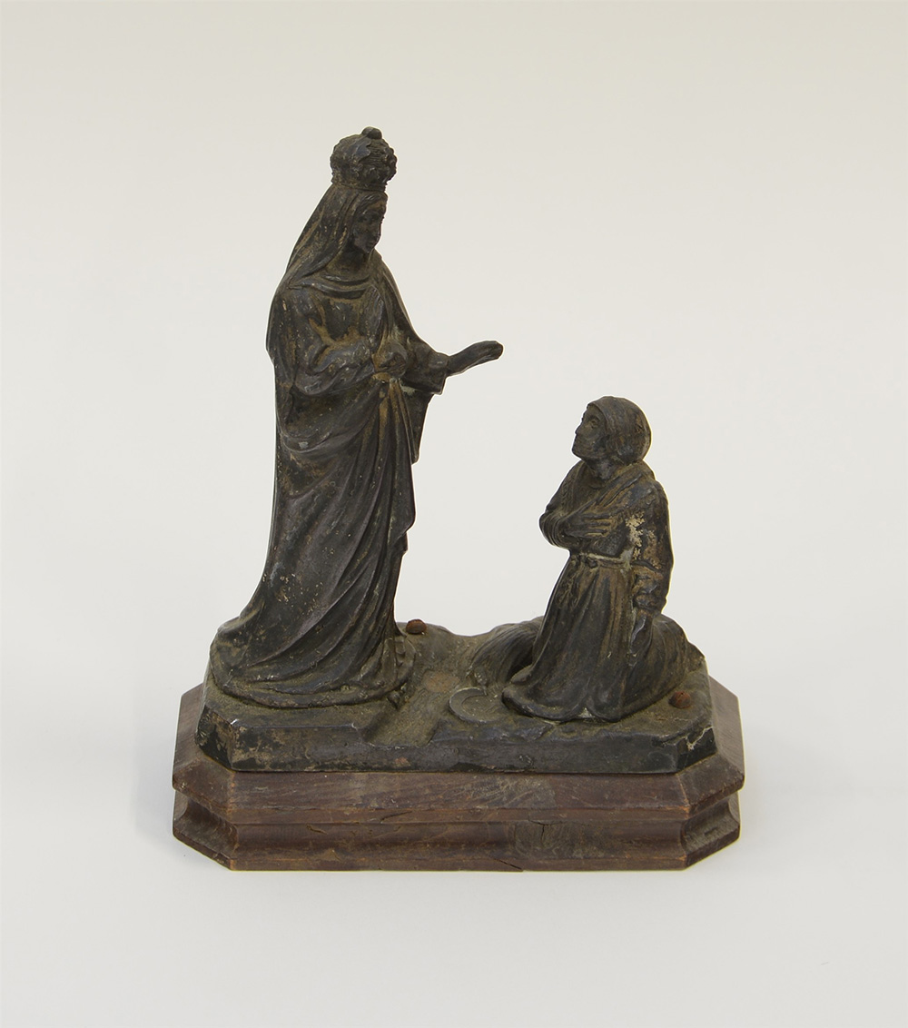 Ignoto, "L'apparizione della Madonna ad una contadina" scultura in metallo...