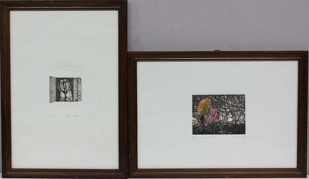 AA. VV. "Figure" e "Cespuglio" due litografie tirate a dieci esemplari di misure diverse, firmate. In cornici