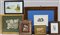 Lotto composto da sei cornici contenenti due stampe, un fossile, un ricamo,...