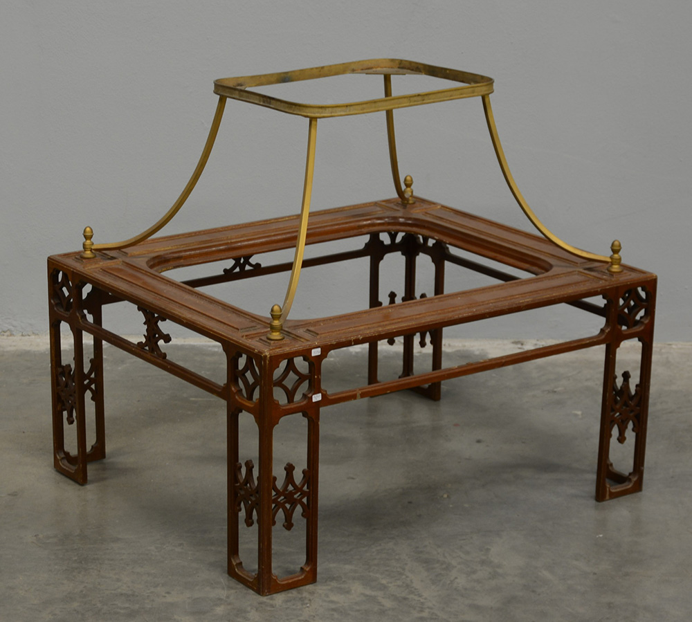 Lotto 2317 | Tavolino da salotto in legno con gambe angolari a giorno sormontato da...