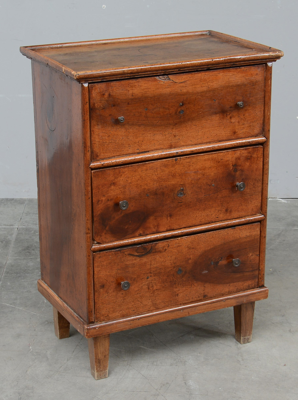 Antico comodino in noce a tre cassetti (cm 57x82x37) (difetti)