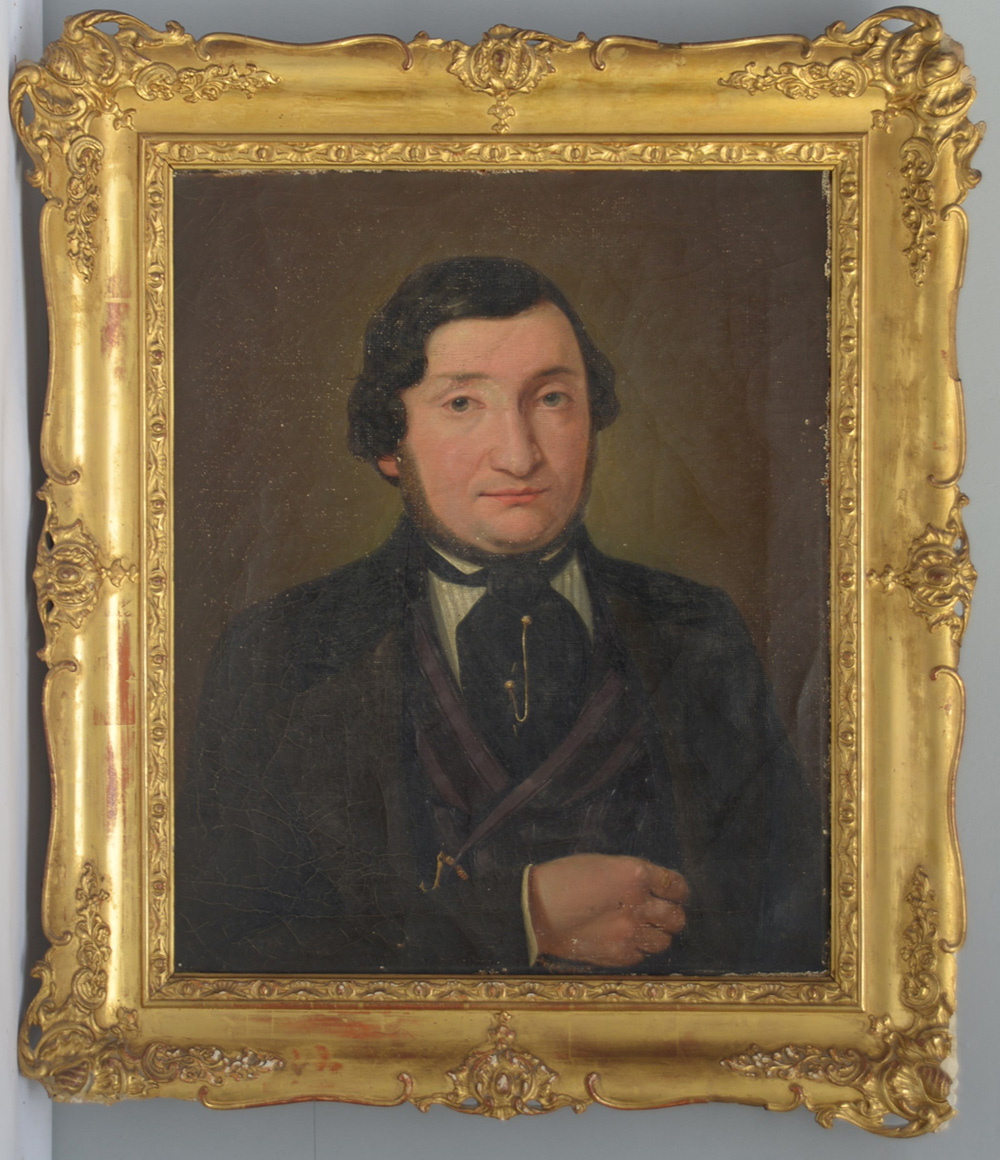 Scuola del sec. XIX "Ritratto di gentiluomo" olio su tela (cm 60x47) In cornice in legno e pastiglia dorata (difetti e mancanze)