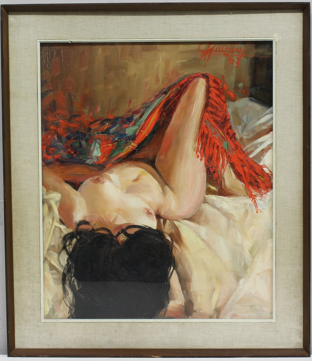 G. Maurini "Nudo di donna sdraiata" olio su tela (cm 60x50) firmato in basso...