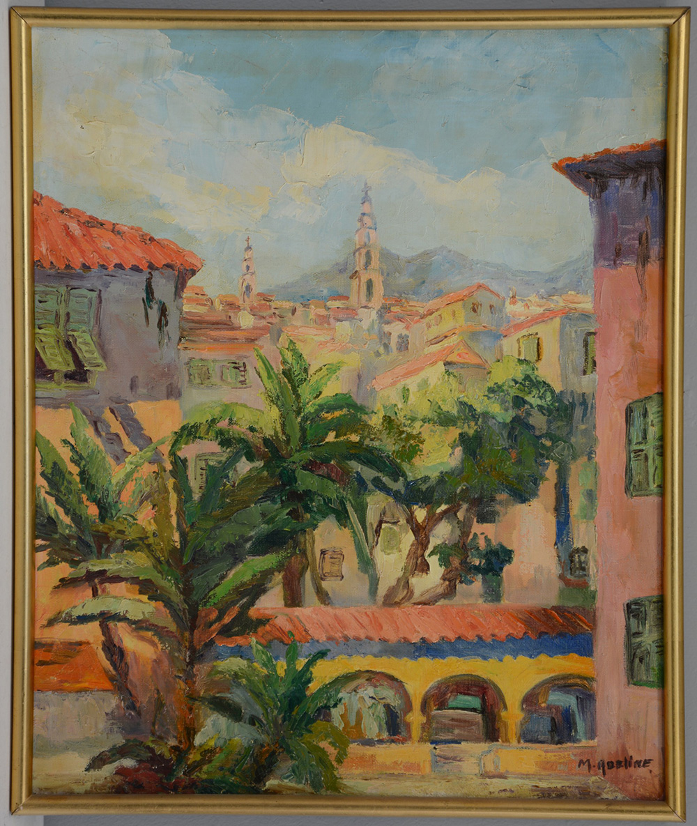 Lotto 2430 | Adeline M. "Scorcio di paese" olio su tela (cm 46x37) firmato in basso a...