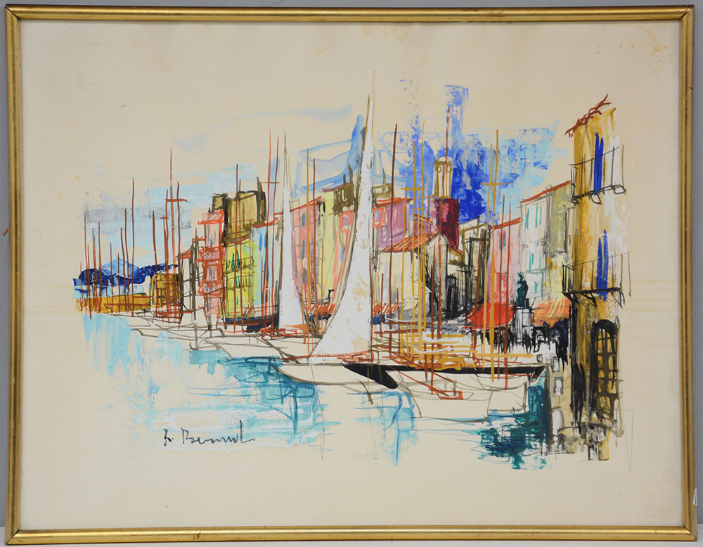 firma indecifrata "Porto" tecnica mista su carta (cm 50x65) firmato in basso a sinistra, in cornice (difetti)