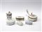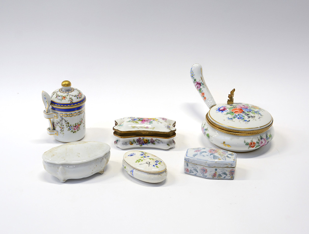 Manifatture diverse. Lotto composto da quattro bomboniere, un raccogli cenere ed una senapiera (lievi difetti)