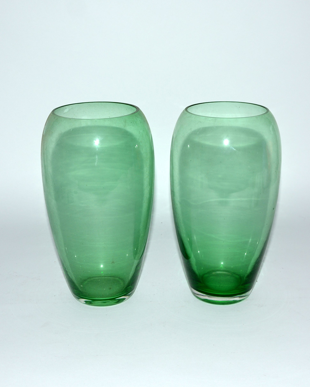 Lotto composto da due vasi in vetro verde trasparente (h cm 27)