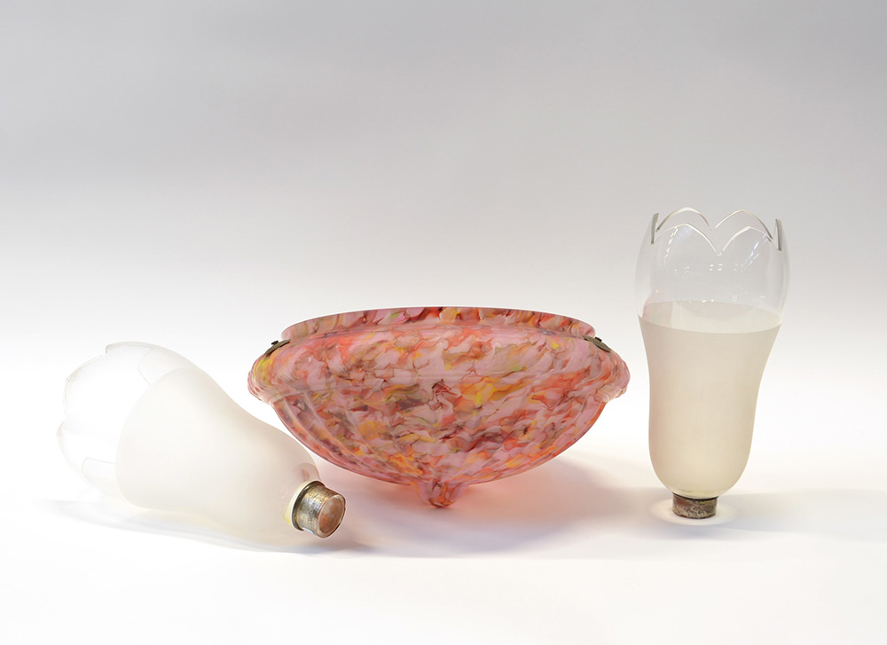 Lotto composto da tre paralumi diversi in vetro (difetti)