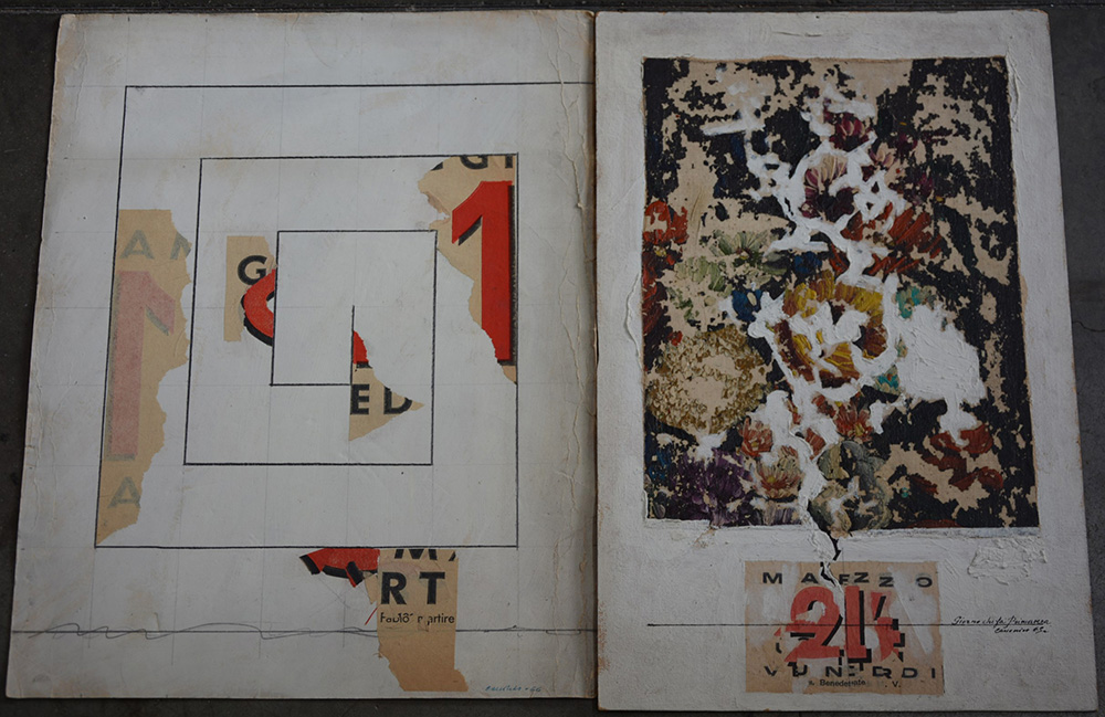 "Senza titolo" due tecniche miste e collage su cartoncino, misure diverse. Firmati e datati in basso a destra (lievi difetti)