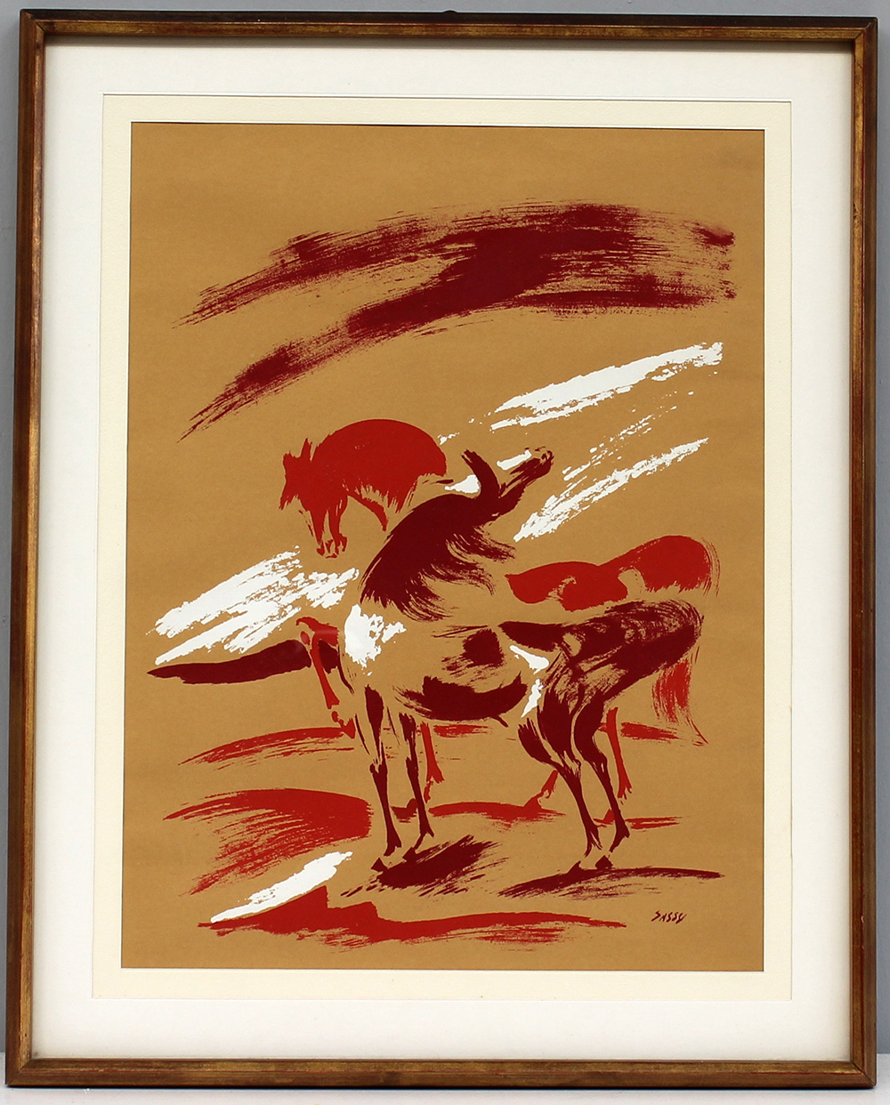 "Cavalli" litografia su carta marrone (cm 45x35) firmata in matrice in basso a destra, in cornice (lievi difetti)