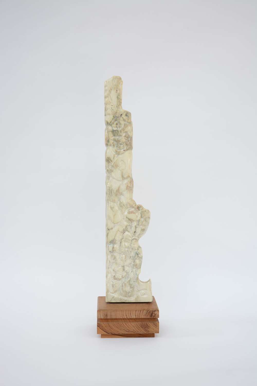 "Senza titolo" 1988, scultura in marmo bianco (h cm 60) firmata e datata sul fianco, poggiante su base in legno