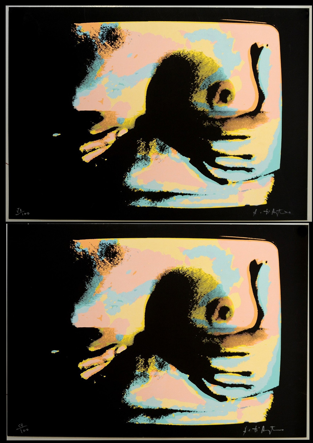 "senza titolo" due serigrafie (cm 48x68) numerate e firmate in basso. Edizione Cooperarte, Padova, 1976-77.