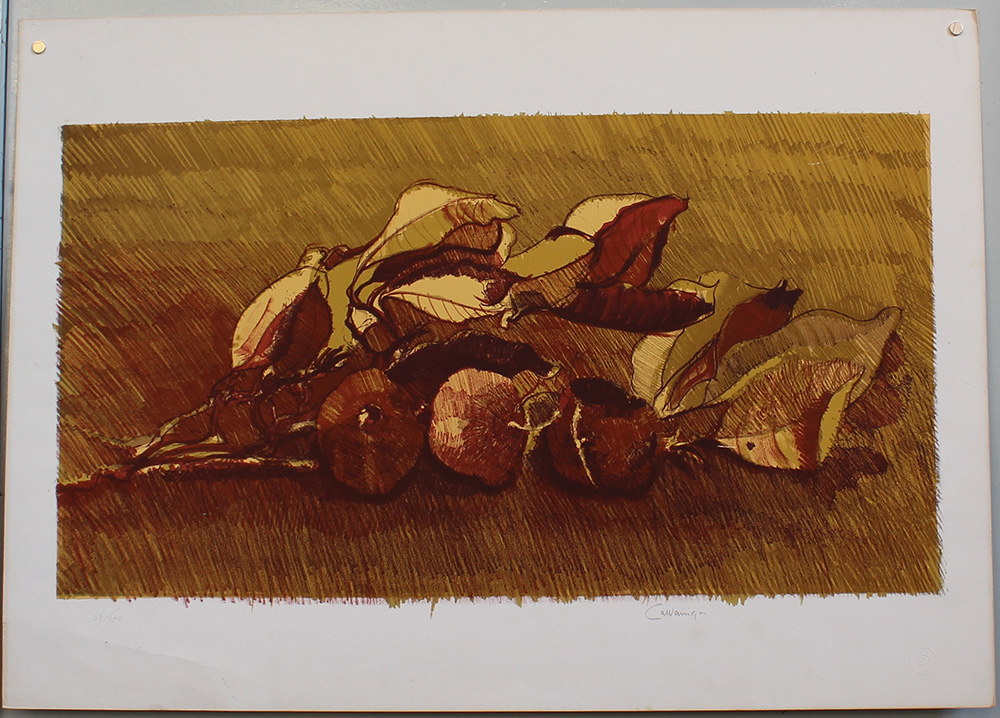 "Senza titolo" litografia policroma (cm 49,7x70) numerata 27/100 e firmata in basso a matita. Timbro a secco in basso a destra (lievi difetti)