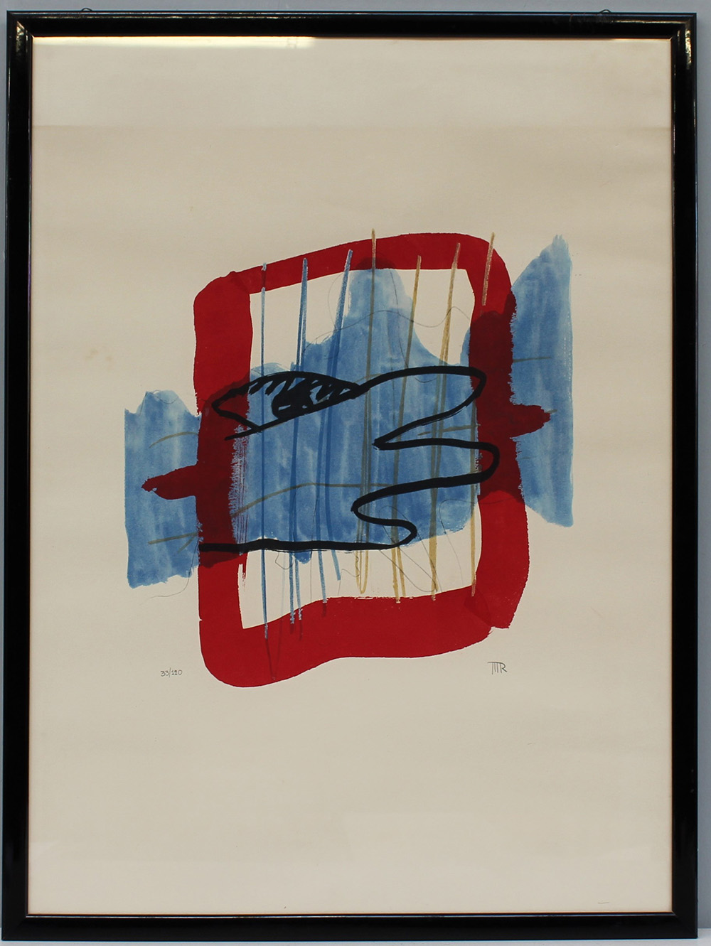 "Senza titolo" litografia policroma (cm 80x59) numerata 33/120 e monogrammata in basso a matita. In cornice (lievi difetti)
