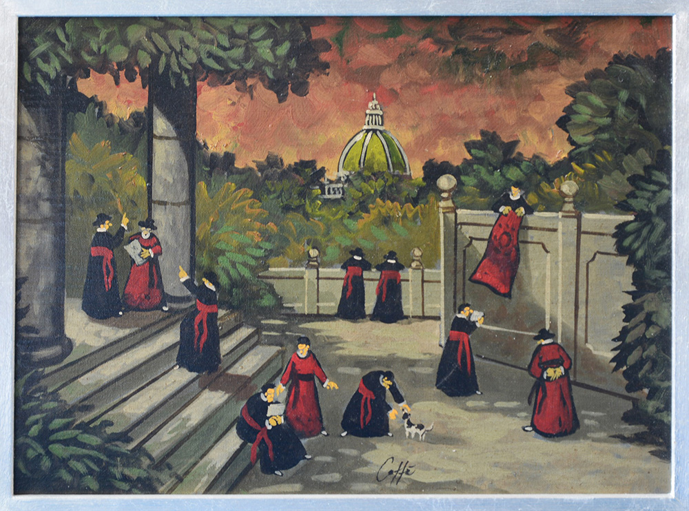 Nino Caffè (Alfedena 1909 - Pesaro 1975)"Pretini" olio su tela (cm 30x40)...