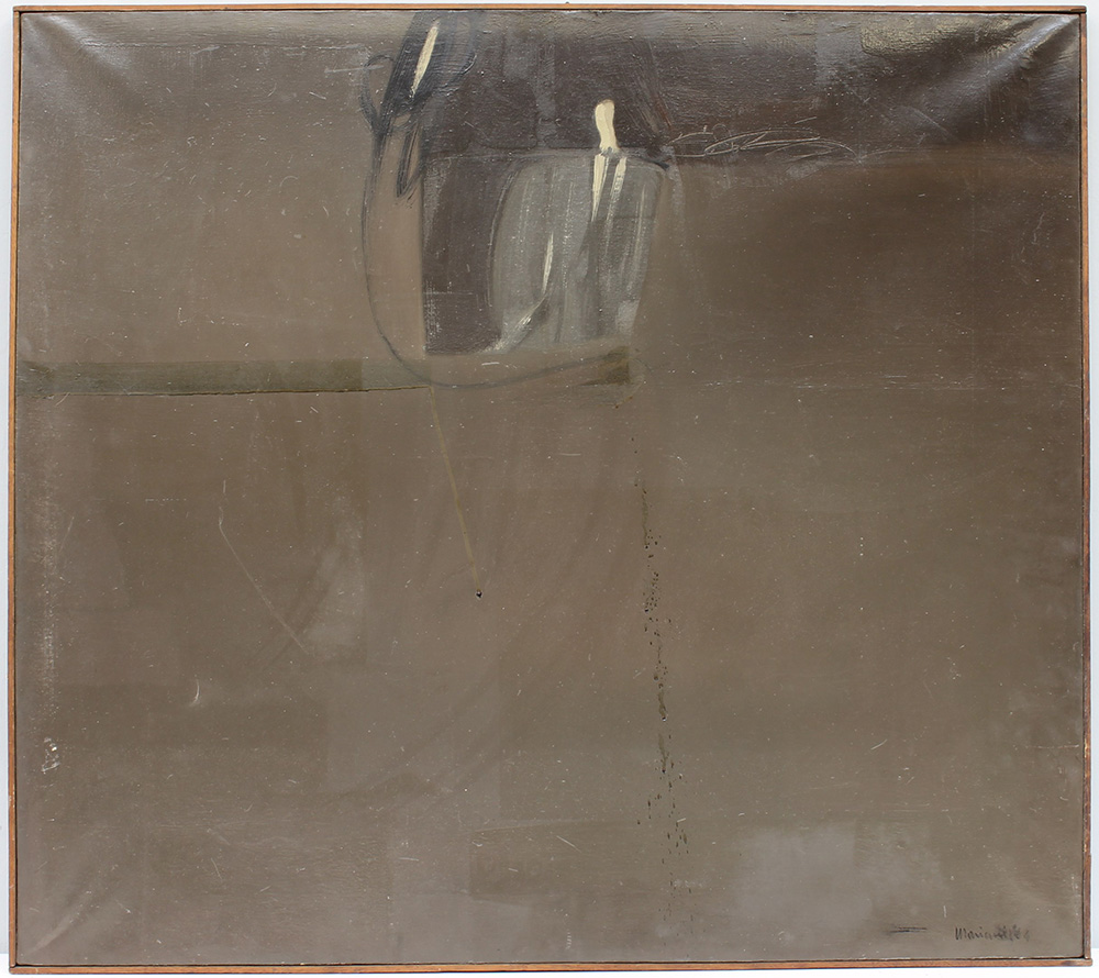 "Manifesto contemporaneo"1964, olio su tela (cm 80x89,5) firmato in basso a destra. Titolato, firmato e datato al verso (lievi difetti)
