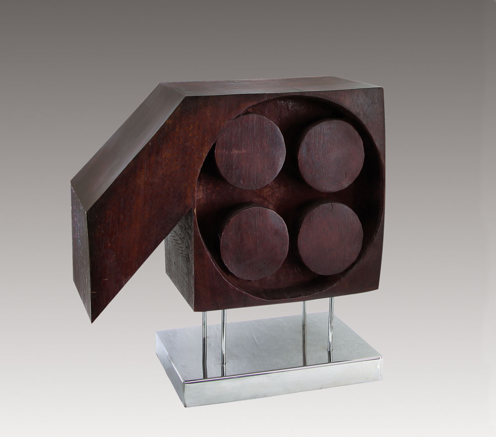 YASUO FUKE Kagawa (Giappone) 1929 Senza titolo scultura in legno e metallo cm. 36x35x19, firma scolpita sul lato inferiore.
