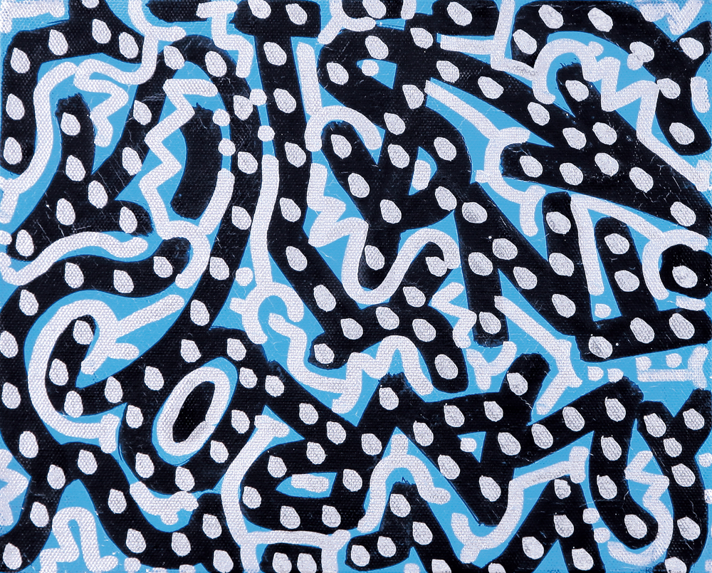 LITTLE ANGEL (LA2) New York 1967  TNS on blue, 2010  acrilici e marker su tela cm. 20,4x25,5; firma al retro, dichiarazione d'autenticità dell'artista su certificato della Follin Gallery (New York) allegato.