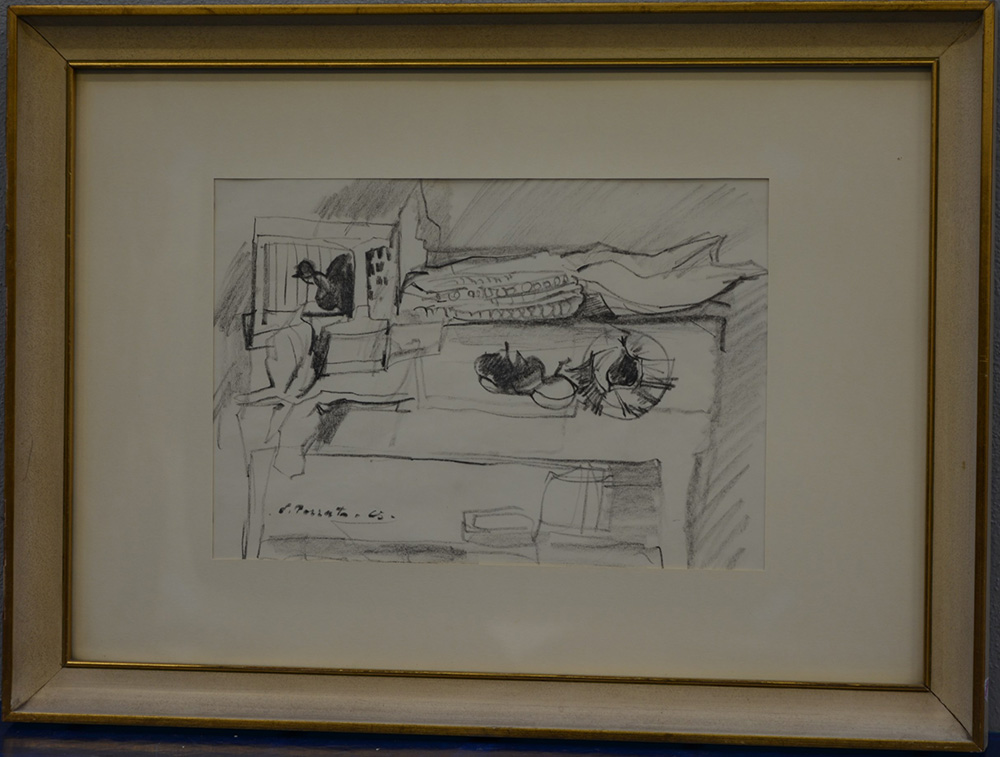 “Natura morta” 1965, disegno (cm 22x32), firmato e datato in basso a sinistra in cornice (difetti)