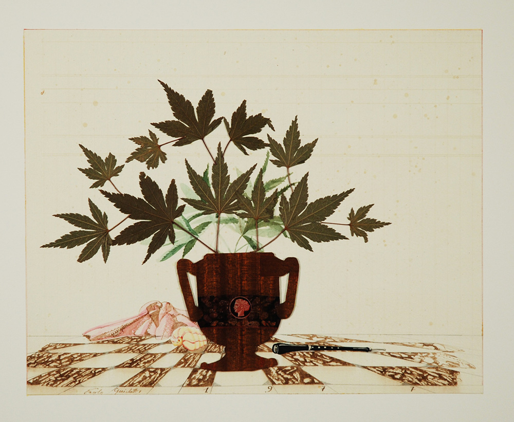 "Composizione" 1977 tecnica mista su carta applicata su cartone (cm 31x25) Firmata e datata in basso
