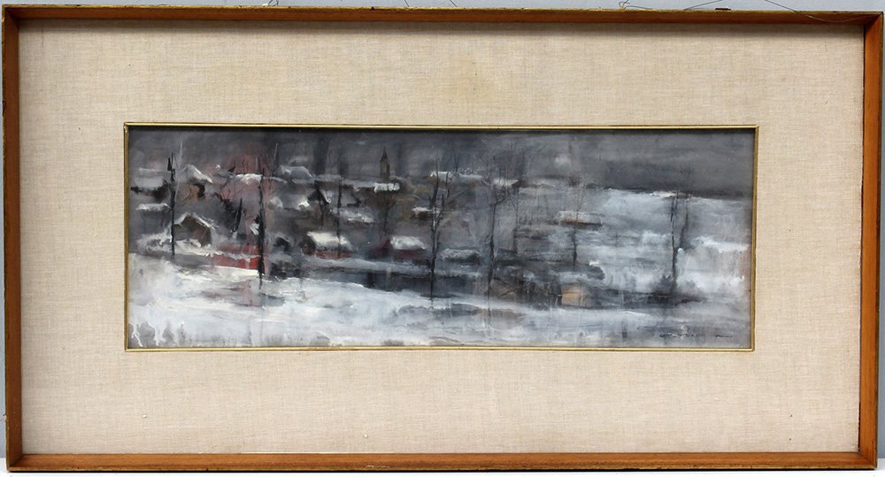 "Paesaggio invernale" 1962 tecnica mista su carta (cm 25x70) firmato e datato in basso a destra, in cornice