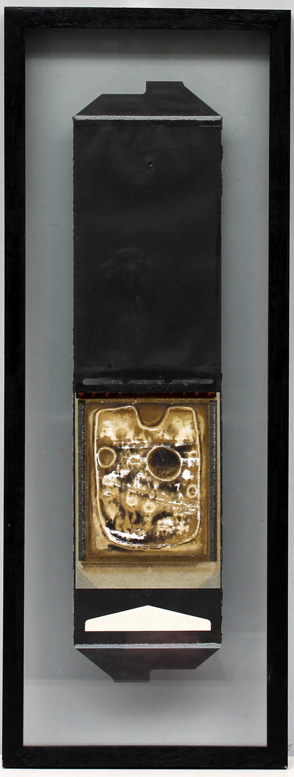 Firma dell'autore e timbro rosso applicato sul vetro. Opera in cornice (difetti)