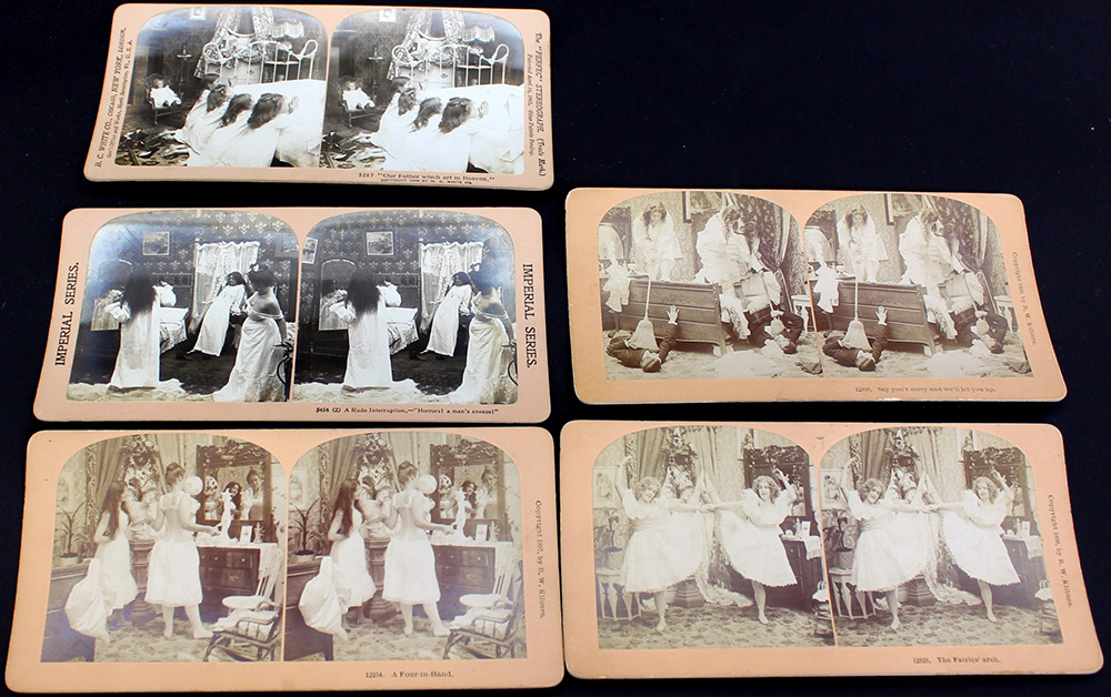 Lotto composto da cinque stereoscopie con scene galanti e di genere...