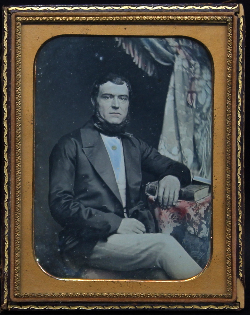 AnonimoGrande ritratto dagherrotipo di uomo con libro, metà sec....