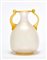 Manifattura di Murano. Vaso biansato in vetro soffiato opalescente, leggermente iridato sulla superficie esterna, con base, anse e orlo superiore applicati in vetro giallo arancio. Italia, anni 20 (h cm 22) (lievi difetti)