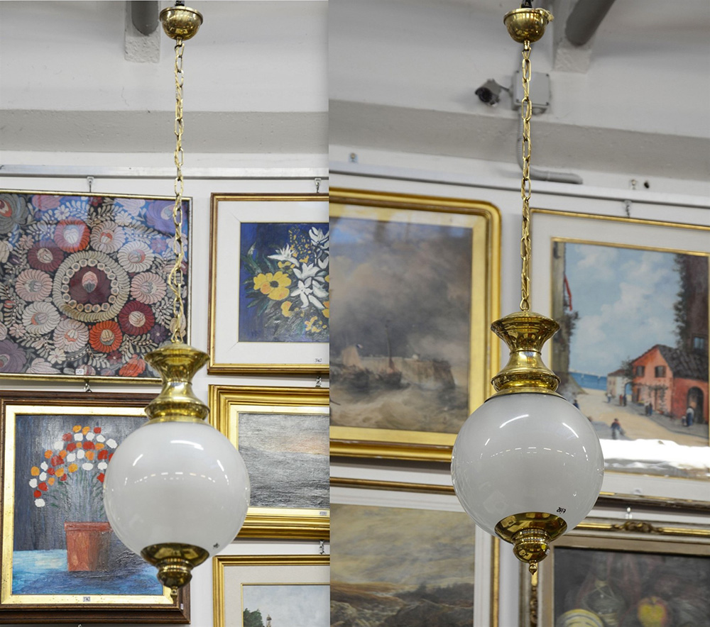 Lotto 2817 | Coppia di lampade a sospensione con diffusore sferico in vetro acidato e...