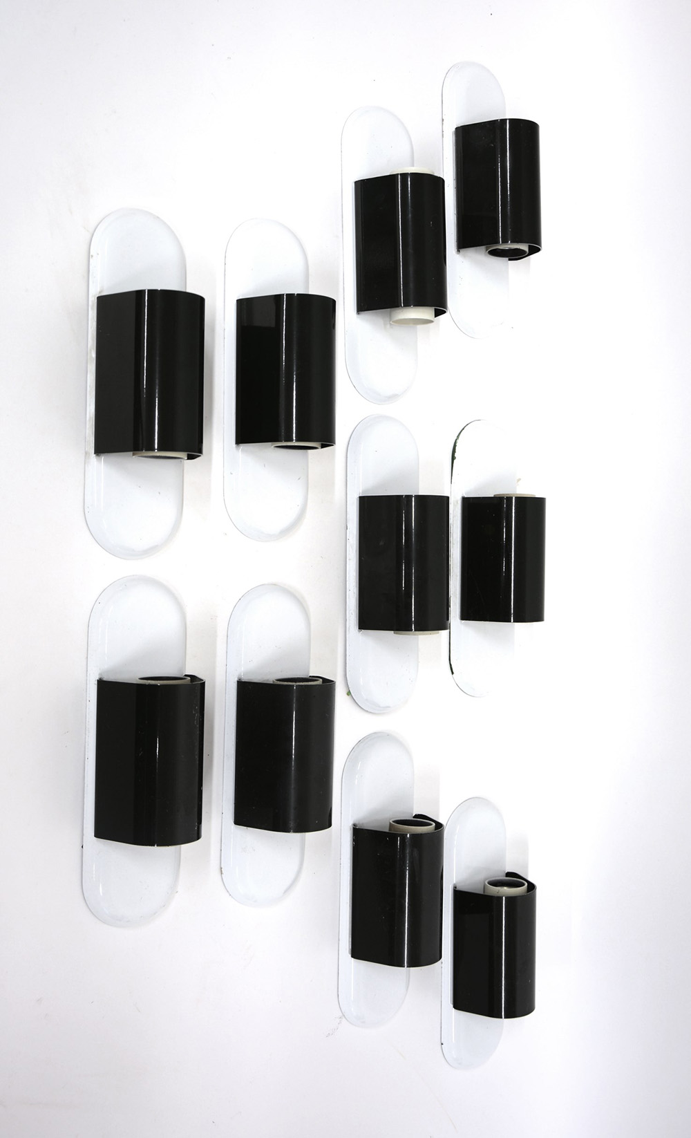 Lotto composto da dieci appliques in metallo laccato verde e bianco. Italia, 1981 (h cm 26,5) (lievi difetti)