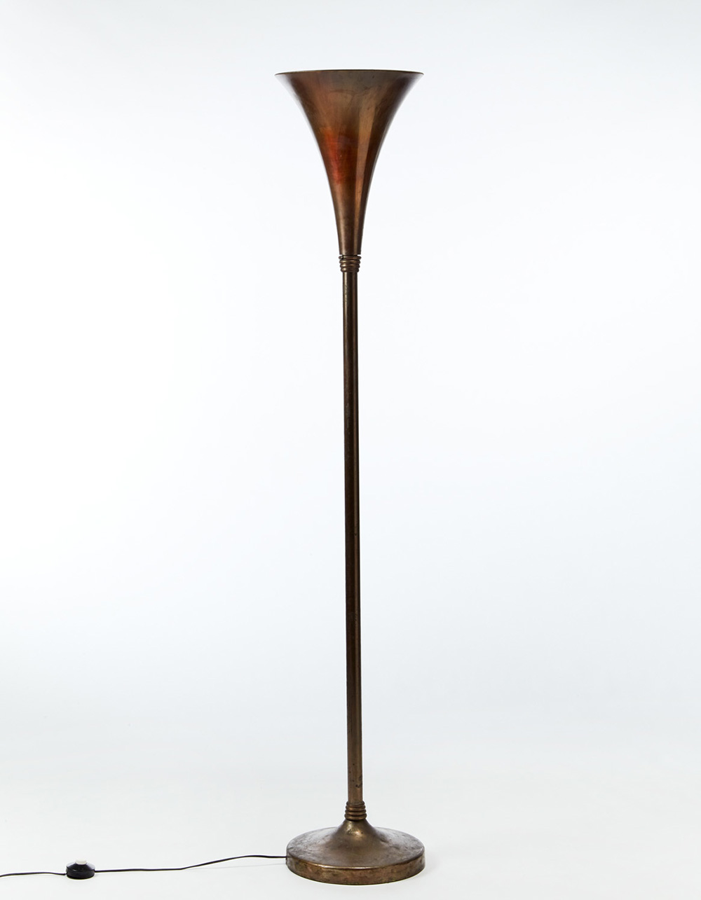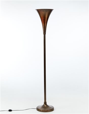 Lampada da terra tipo Luminator, completamente in ottone. Esecuzione italiana, anni 30 (h cm 179,5) (difetti)