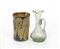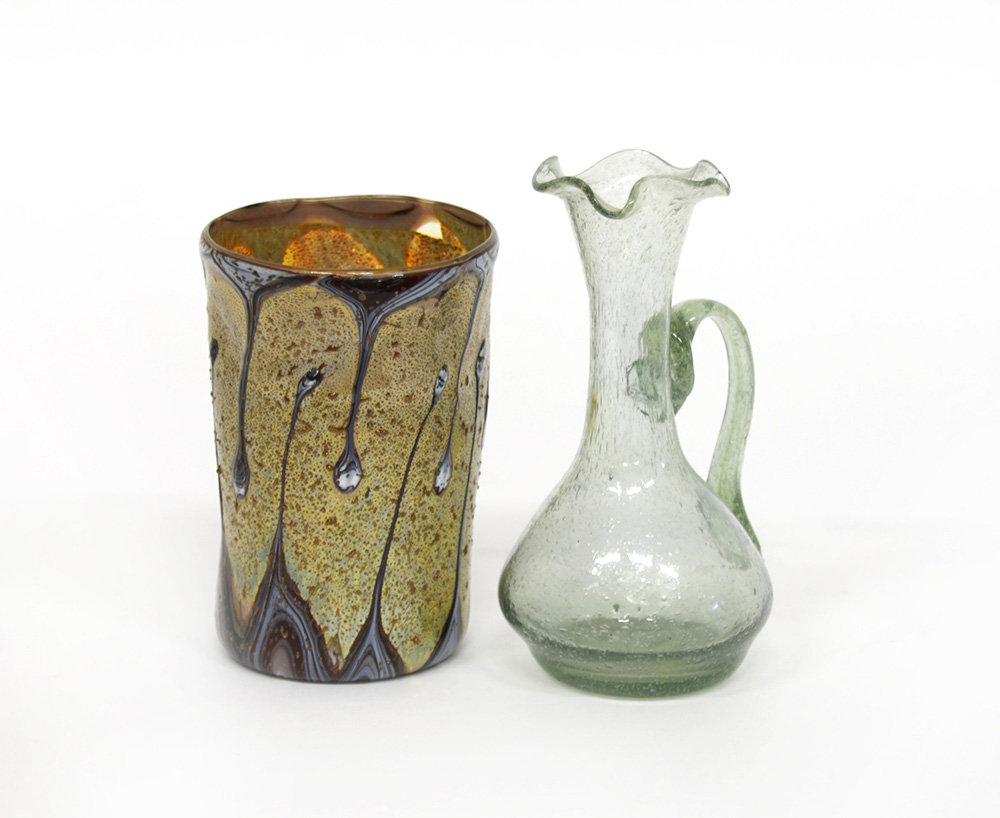 Manifattura di Murano. Lotto di un vasetto decorato a colature e un piccolo versatoio in vetro soffiato (hmax cm 16)