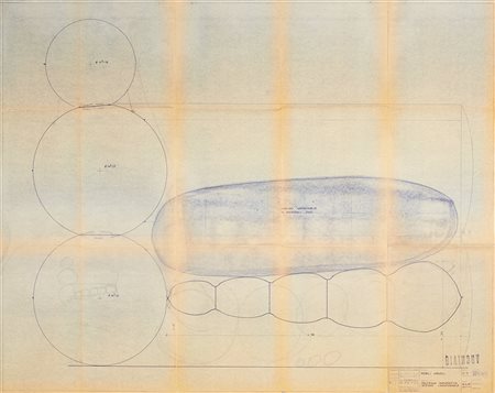 Due eliocopie dei disegni di studio per una "poltrona gonfiabile", rispettivamente in scala 1:5, datata 2/5/67 e in scala 1:1, datata 26/6/67 (rispettivamente cm 58,5x51,5 e cm 98,5x78) (lievi difetti)