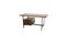 Scrivania con struttura metallica laccata nera, piano e cassettiera impiallacciati in legno di palissandro indiano. Italia, anni 60 (cm 150x76x70) (difetti)