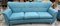 Divano imbottito rivestito in tessuto turchese con gambe troncoconiche in...