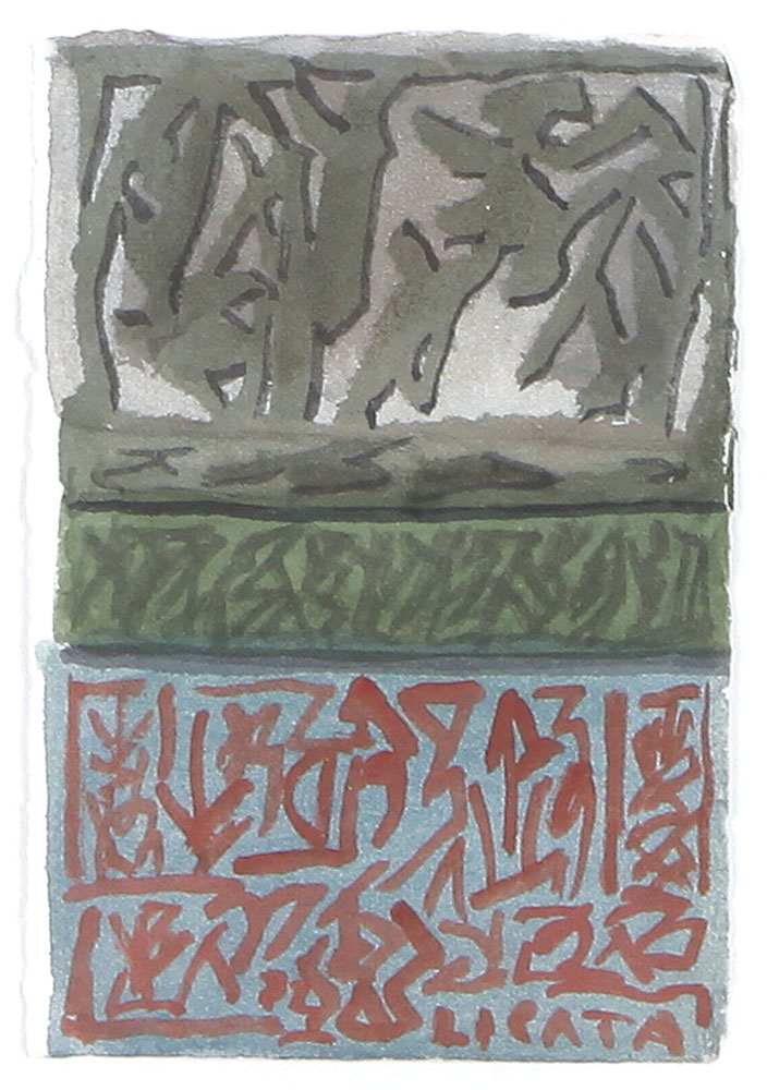 RICCARDO LICATA Torino 20/12/1929 Senza titolo tecnica mista su carta a mano cm. 13x9, firma in basso a destra, pubblicata sul catalogo della mostra "Licata e i suoi diari", a cura di Cristiano Ragni, testi di Giovanni Granzotto e Dino Marangon, DZ Nuovo Segno (Forlì), 2005, pagina 24.