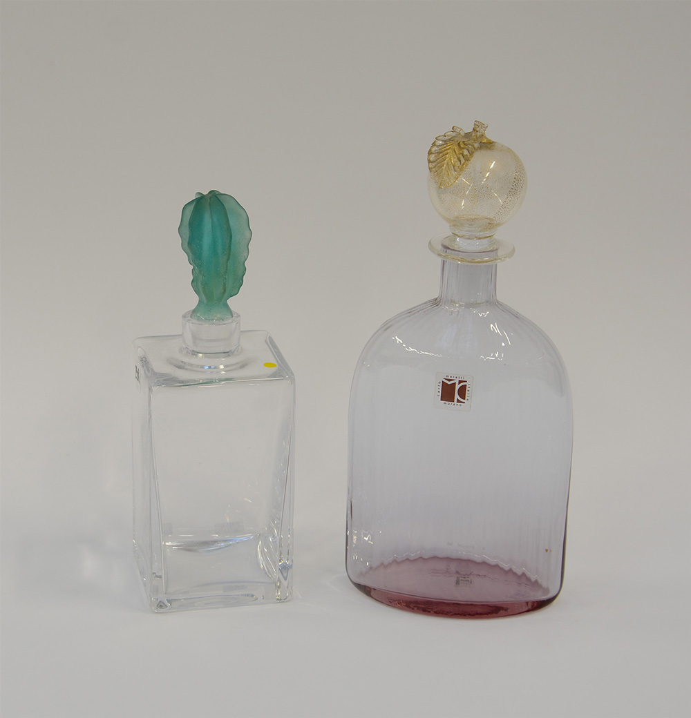 Manifattura di Murano. Lotto composto da due bottiglie con tappo in vetro...