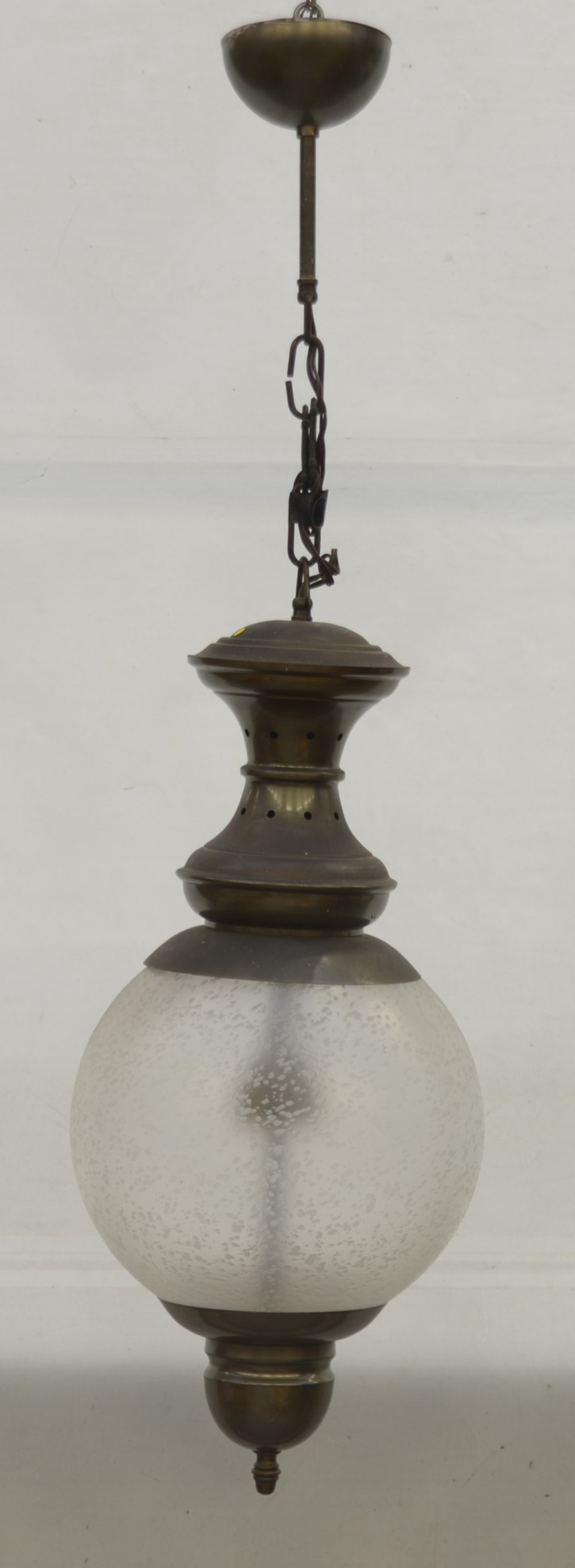 Lampada a sospensione in ottone e vetro acidato, Italia anni 60 (h cm 80) (lievi difetti)
