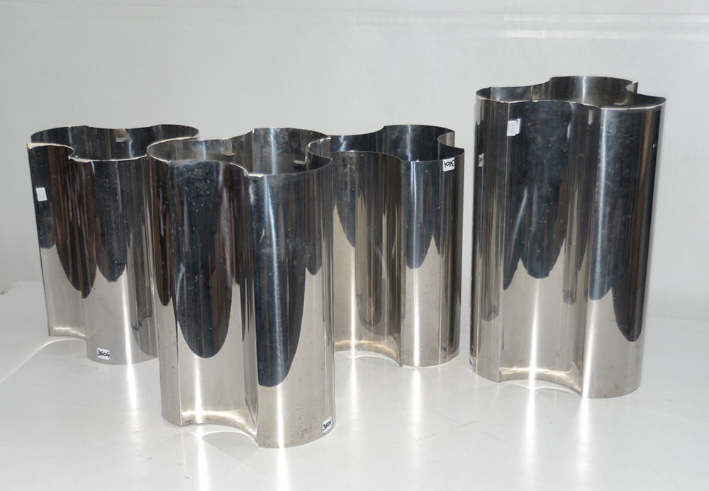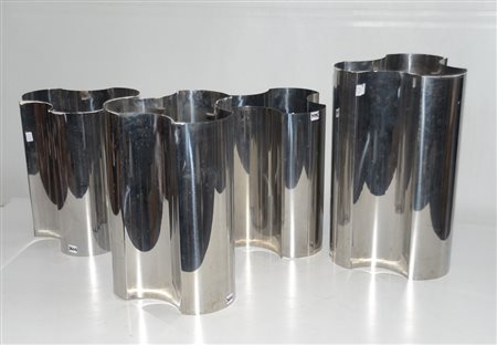 Gruppo di quattro lampade a sospensione in acciaio inox stampato. Produzione...