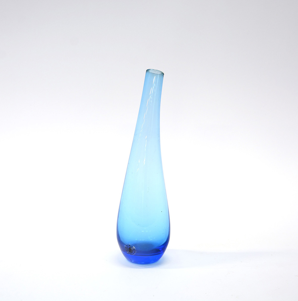 Manifattura di Murano. Vasetto soliflore in vetro soffiato blu trasparente. Seconda metà del sec XX