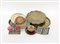 Cartone contenente una saliera e una formaggera in metallo con vetro rosa,...