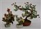 Lotto di tre sculture raffiguranti vasi fioriti con petali e foglie in pasta vitrea e pietra dura (difetti)
