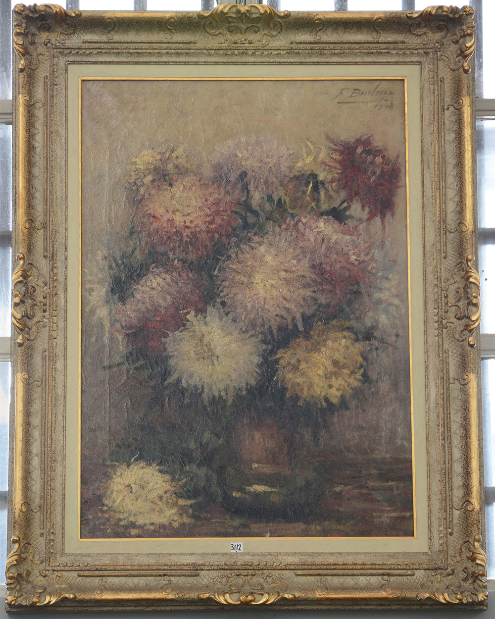 Baulens F. "Vaso con crisantemi", olio su tela (cm 92 x 65) firmato e datato...