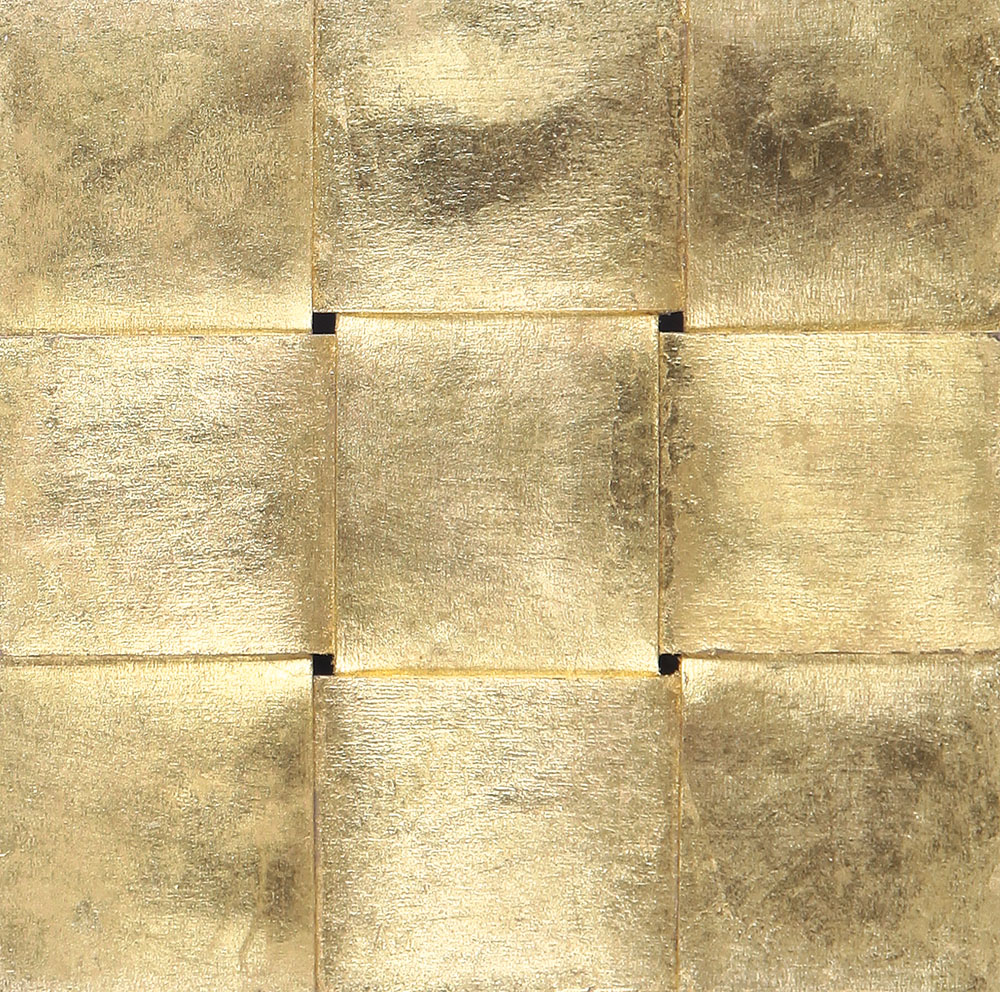 ARMANDO MARROCCO Galatina 08/02/1939 Intreccio d'oro, 1965 acrilico su cartone intrecciato cm. 25x25, titolo, firma, anno, etichette della Galleria Il Milione (MI) e di Cenobbio Visualità (MI) al retro, dichiarazione d'autenticità dell'artista su foto, entro teca in plexiglass.