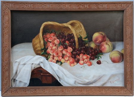 Tommasi "Natura morta con frutta e cesto" olio su tela (cm 43x64) firmato in...