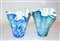 Lotto composto da due vasi a fazzoletto in vetro a decoro marmorizzato nei toni del blu (h max cm 28)