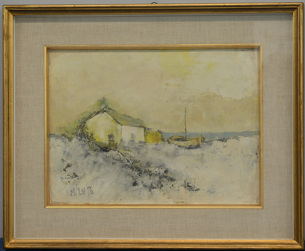 Mario Lupo (1926 - 1992 ) "Casolare con barca" olio su tela (cm 30x40)...