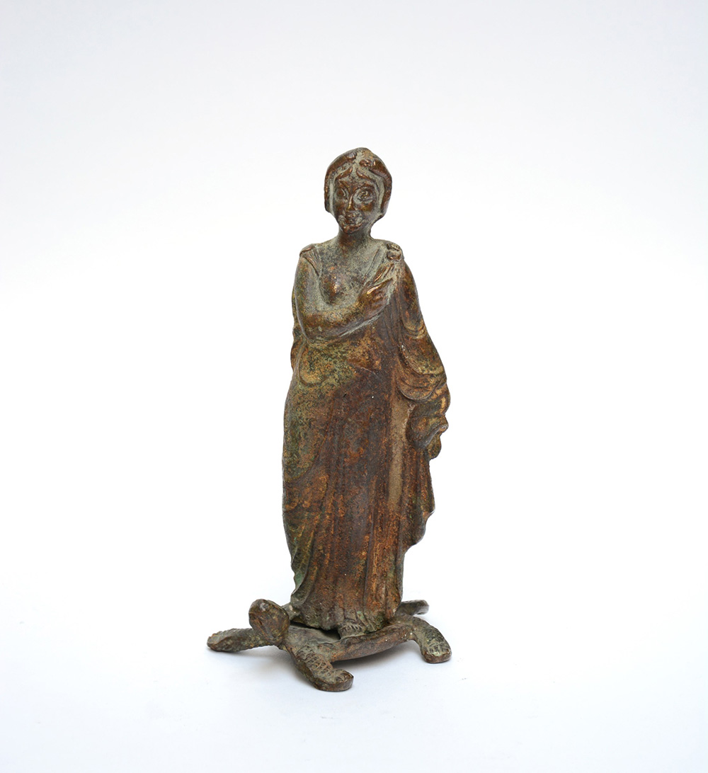 Scultura in bronzo dall'antico raffigurante figura femminile (h cm 20) (difetti)