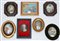 Lotto di sette piccoli quadretti in cornici di differente soggetto